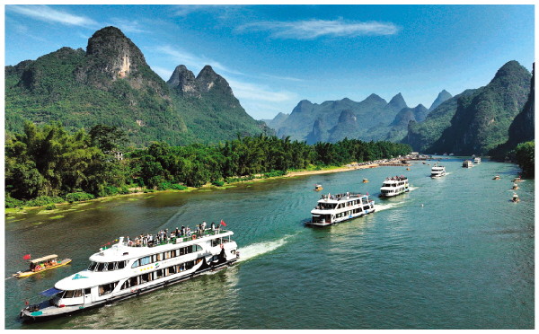 国庆期间,漓江之上热闹非凡,游船与竹筏交织穿梭。众多游客纷至沓来,选择乘坐游船或竹筏,在碧波荡漾的江水中悠然前行。漓江两岸奇峰罗列,如画美景令人陶醉。这里独特的自然风光,为游客们带来一场难忘的视觉盛宴,让人们在国庆假日中尽享自然之美。图为10月4日,游客乘坐游船或竹筏在畅游漓江。