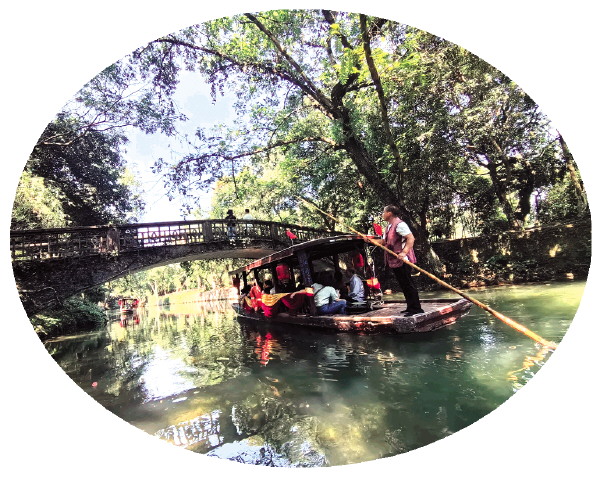 国庆假期,灵渠景区迎来大批游客。不少游客选择乘船游览灵渠风光,感受这条千年古运河的灵动与神奇。图为10月5日下午,游客乘船游览灵渠。 记者秦丽云 摄