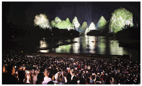 ▲来桂林看一场《印象·刘三姐》山水实景演出,是大多数游客必选的“桂林攻略”之一。今年国庆假期,游客除了能在《印象·刘三姐》园区看一场演出,还可以参与体验漆染手办、参观刘三姐文化印象博物馆,以及参加山歌巡游、鼓楼绣球等活动,沉浸式感受《印象·刘三姐》这一“桂林经典”的独特魅力。据统计,10月1日至4日,《印象·刘三姐》园区接待游客4万余人次。