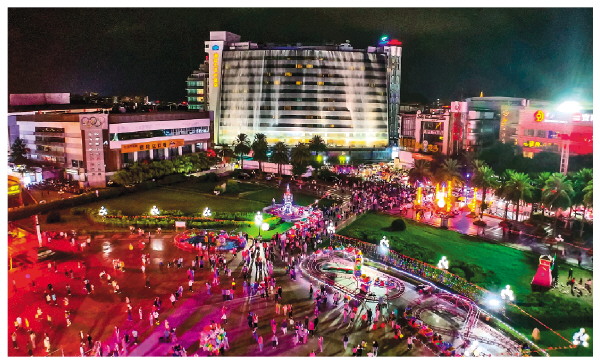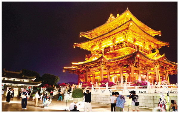 ◤10月6日晚,在逍遥楼前的广场上,大家陶醉在醉人的夜色中。