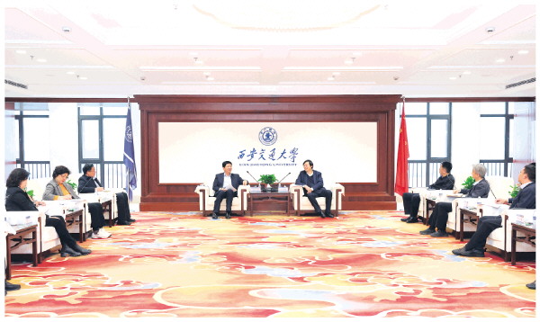 12月9日,自治区人大常委会副主任、桂林市委书记周家斌与西安交通大学校长张立群等进行深入交流。记者李凯 摄