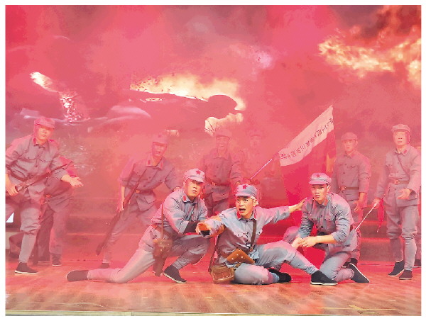 情景党课再现红军浴血奋战的场景。