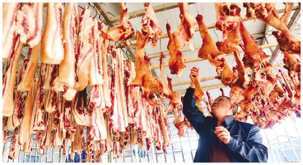 每年进入腊月,叠彩区潘家村的村民都开始忙着在家熏制腊肉、腊肠,迎接新春佳节的到来。村民们将腌制好的猪肉挂起风干,再烧起松柏、甘蔗皮进行熏制。熏制后的腊肉切片,晶莹剔透,尝一口香气四溢,是春节款待宾客的一道必备佳肴。