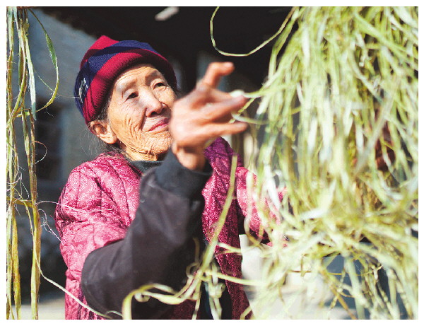 砍麻过后,就是撕麻、捶麻、洗麻。老人带着记者穿过长长的石子小巷,来到村中央的一处水渠旁。“捶麻时不要太用力,轻轻捶,只要把皮去掉,留下经络就行。”老人拿着一根槌棒,一边教记者,一边麻利地捶打着新麻。古村悠悠,渠水清清,再加上午时的袅袅炊烟,有一瞬间,记者误以为回到了老人年少时曾经历的艰难又朴素的平静岁月。