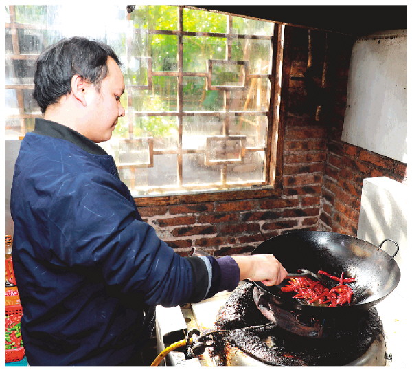 连日来,两江镇信果村委张家村的村民张立,每天都在为食客们烹饪抛鸭。在两江镇一家农家乐担任大厨的他,因烹制抛鸭的水平高,深得食客们赞许。