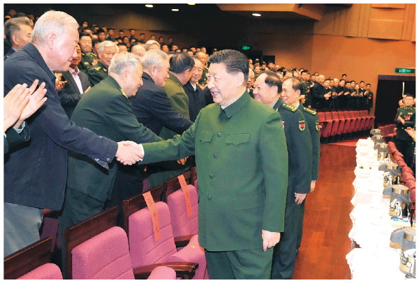 1月17日下午,中央军委慰问驻京部队老干部迎新春文艺演出在北京举行。中共中央总书记、国家主席、中央军委主席习近平观看演出,向在座的军队老同志,向全军离退休老干部,致以节日问候和新春祝福。 新华社记者李刚 摄