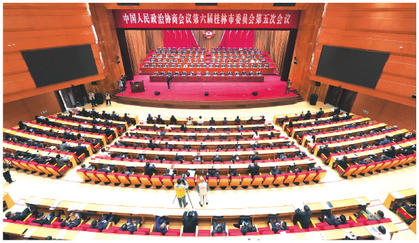 ▲4月9日上午,中国人民政治协商会议第六届桂林市委员会第五次会议开幕。 记者何平江 摄