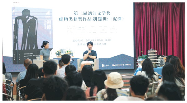 本报讯(记者李思静 文/摄)7月6日,第二届漓江文学奖虚构类获奖作品——刘楚昕《泥潭》新书见面会在桂林书城举行,新人作家刘楚昕与读者面对面分享《泥潭》背后的故事。