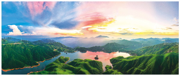 2025年8月2日,航拍全州天湖晚霞,浪漫又唯美。蒋太东 摄