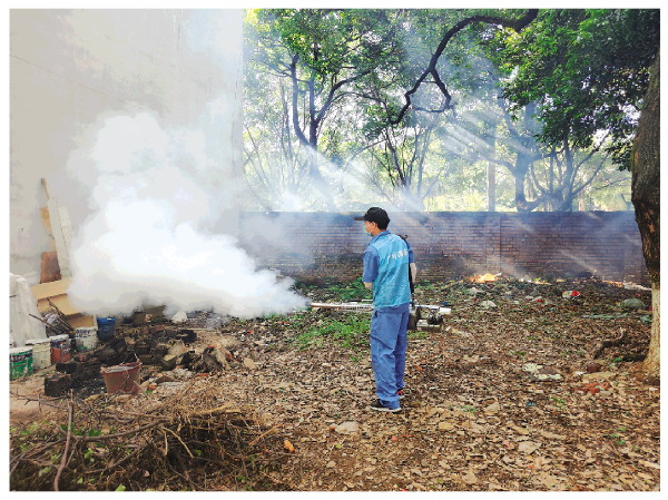 “针对老旧小区的不同区域,我们使用了超低容量喷雾、热烟雾、滞留喷洒、投放灭蚊幼颗粒四种方法灭蚊,力求最大限度杀死蚊子,有效预防登革热、寨卡病毒病、疟疾、基孔肯雅热。”市疾控中心相关负责人介绍,超低容量喷雾呈悬浮状飘浮在空气中,能杀死正在飞行的蚊子。热烟雾通过加热药液产生烟雾,是杀灭灌木丛成蚊的利器。滞留喷洒则是将药剂作用在墙面和植物上,成蚊一旦接触就会死亡。为杜绝后患,蚊子的卵和幼虫也要一并消灭。灭蚊幼颗粒投放在水中,可以有效消灭蚊子幼虫,作用时间长达半个月,减少成蚊的孳生。