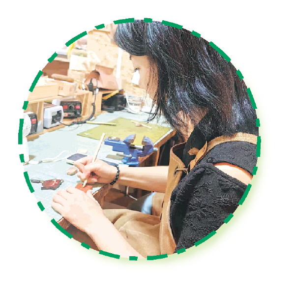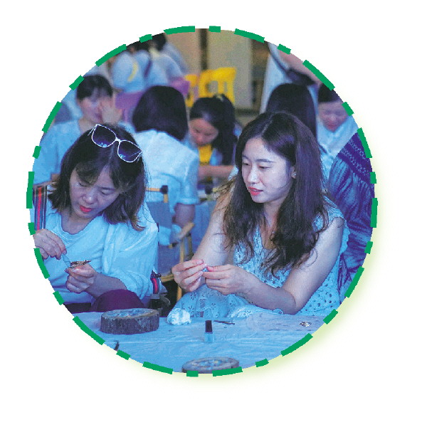 图①:游客在象山区九号文创园内学习制作螺钿。胡丽娟 摄
