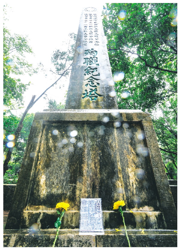 ▲今年是中国人民抗日战争暨世界反法西斯战争胜利80周年。近日,一位网友专门将80年前刊登日本投降的大公报照片打印、过塑,和鲜花一起摆放在桂林七星公园普陀山桂林保卫战三将军殉职纪念塔前,以告慰先烈:这盛世如您所愿! 记者何平江 摄