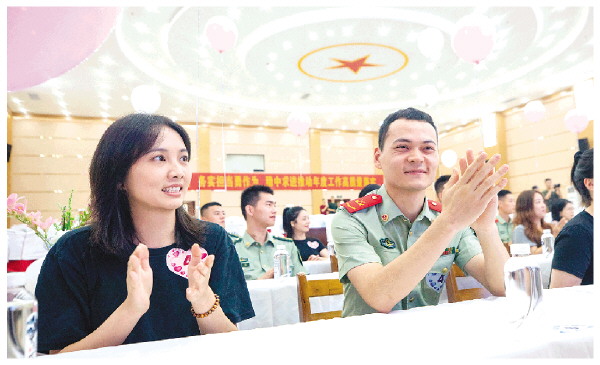 活动现场,缤纷气球与精致茶点营造出浪漫氛围,男女嘉宾领取专属号码牌并在签到墙写下姓名。主持人一句“以爱为媒,以情为桥”拉开活动序幕。官兵们主动出击“破冰”,分享军营故事与青春理想,现场笑声不断。随后,“捉泥鳅”“击鼓传花”“桃花朵朵开”等互动游戏轮番上演,嘉宾们心有灵犀、配合默契,表白环节更是将气氛推向高潮。“兵哥哥们英姿飒爽、阳光帅气,今天的活动为我们提供了难得的沟通平台。”一位参加活动的女嘉宾开心地表示。上尉黄琳喜也感慨:“平时训练任务重,很少有机会接触地方女青年,今天认识了很多优秀的朋友,非常幸运。”记者在现场看到,不少男女嘉宾互换了联系方式,期待双方的进一步了解。