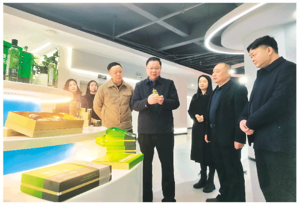 恭城县委书记陈代昌(前排左二)在企业调研。