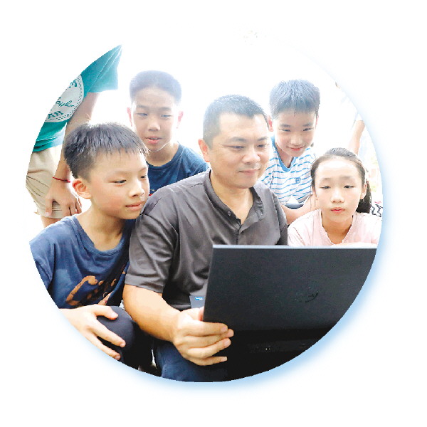吕明利用课余时间与学生们分享自己制作的短视频。