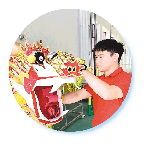 舞龙是唐军从小的爱好。他的老家在恭城瑶族自治县。在他的记忆里,家乡逢年过节都会舞龙舞狮,看着大人们高举巨龙做出各种“炫酷”动作,他幼小的心灵埋下了热爱的火种。2017年唐军考入大学,所学的专业是历史,但他对舞龙始终念念不忘。让他惊喜的是,进入大学的第二天他就了解到学校有一个舞龙社团,于是兴奋加入了。大学几年中,舞龙成了唐军割舍不下的热爱,他屡次在全国大学生舞龙舞狮比赛中摘得桂冠。凭借一腔热爱,他不仅练就了舞龙的扎实功底,更建立起传统文化与现代教育的连接思维,就像他常说的:“举起的不仅是龙杆,更是文化传承的接力棒。”