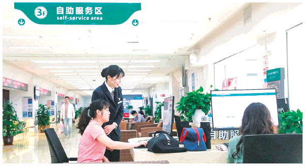在桂林市政务服务中心,工作人员引导前来办事的群众自助办理业务。记者何平江 摄