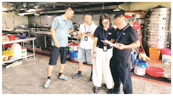 恭城瑶族自治县纪委监委紧盯安全生产责任落实,以餐饮场所燃气安全工作责任落实情况为“小切口”,持续深入开展跟进监督,督促相关职能部门推动安全隐患整改到位,为城镇“烟火气”筑牢安全防线。图为嘉会镇纪委干部联合相关职能部门在餐饮场所开展燃气安全监督检查。 吴柠苒 摄