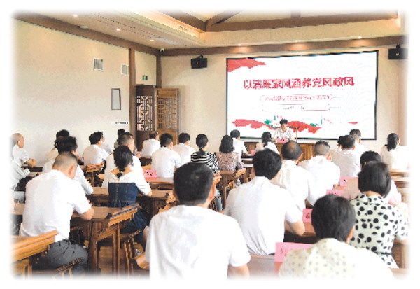兴安县聚焦领导干部这个“关键少数”,深入开展家风建设,推动领导干部发挥示范引领作用,以好家风涵养好作风、培树社会新风。图为县委书记为全县处级领导干部及家属上廉政党课。蒋娟 摄