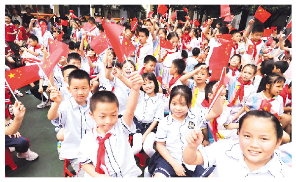 演出现场,孩子们开心地挥舞着手中的小国旗。