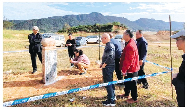 纪念塔碑石被起出。(图片由受访者提供)