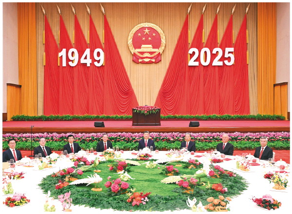 ▲9月30日晚,庆祝中华人民共和国成立76周年招待会在北京人民大会堂举行。中共中央总书记、国家主席、中央军委主席习近平出席招待会并发表重要讲话。 新华社记者燕雁 摄