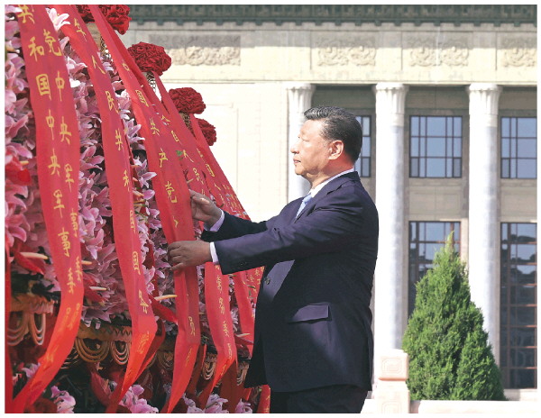 ▲9月30日上午,党和国家领导人习近平、李强、赵乐际、王沪宁、蔡奇、丁薛祥、李希、韩正等来到北京天安门广场,出席烈士纪念日向人民英雄敬献花篮仪式。这是习近平整理花篮上的缎带。 新华社记者李响 摄