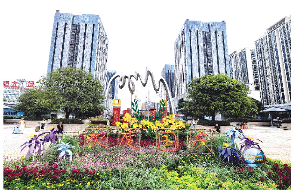 ▲桂林火车北站欢度国庆花坛。