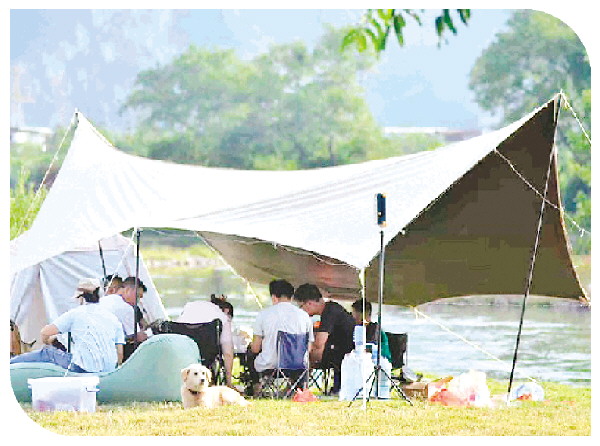▲国庆期间,很多市民游客选择在山水间悠然度假。图为在白鹭洲露营基地,市民休闲聚会。 记者周文琼 摄