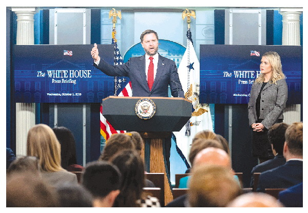 ▲10月1日,在美国首都华盛顿白宫,美国副总统万斯(左)回答记者提问。