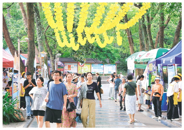 3日,游客在装扮一新的七星公园内游览,度过一个欢乐、祥和的假期。 记者李凯 摄