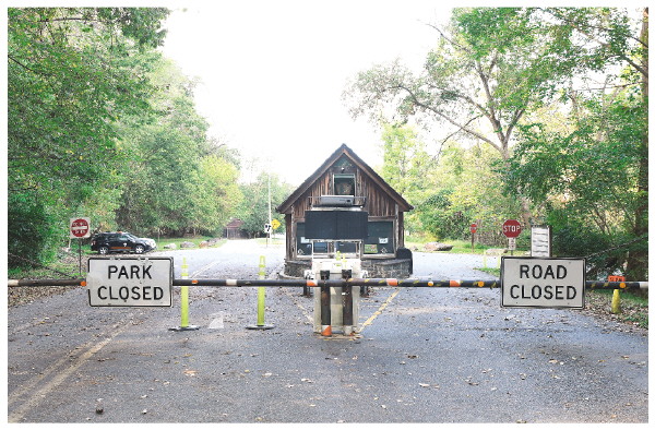 10月3日,在美国弗吉尼亚州费尔法克斯,受联邦政府“停摆”影响,通往大瀑布公园游客中心的道路关闭。 新华社记者李睿 摄