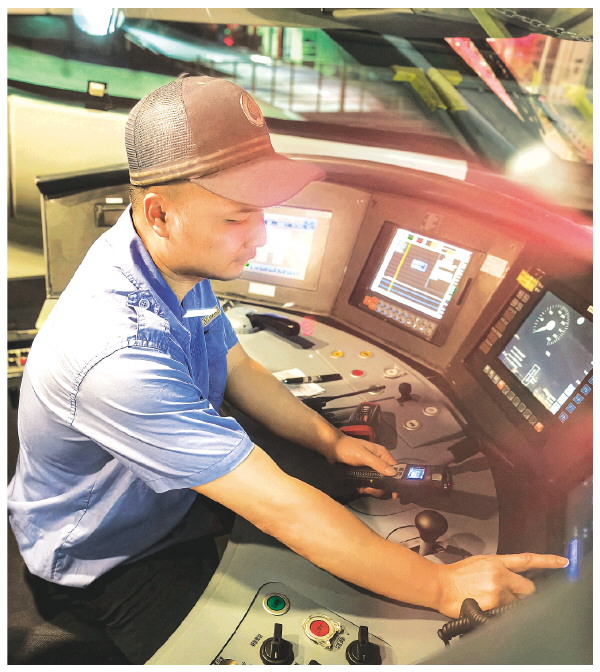 2日23时,在桂林动车所,动车组地勤机械师陈建华正在对一辆刚入库的动车进行检查。只见他熟练地用手电筒检查驾驶室里的各个设备是否正常,同时通过对讲机与同事交流。他说:“我们每天都会认真检查每一辆动车,确保它们在假期里不出现意外状况。”