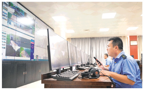 10月1日是假期的第一天。当天下午,桂林工务段生产调度指挥中心道口监控分析员赵明月一边查看监控,一边将在湘桂线上发现的问题告知各个道口的道口工,以确保假期里火车能顺利通过各个道口。