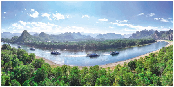 ◤国庆长假期间,被誉为“山水甲天下”的桂林热度不减。10月5日,在碧波如洗的漓江之上,一艘艘满载游客的游船穿梭于奇峰倒影之间,构成一幅流动的山水画卷。