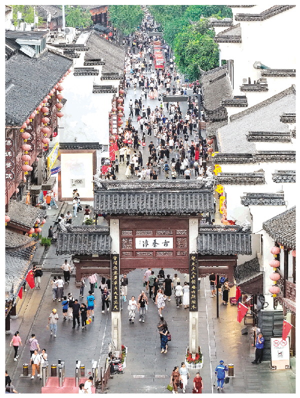 ◤10月7日,游客在江苏省南京市秦淮区的夫子庙景区休闲游玩(无人机照片)。 新华社记者李博 摄 国庆中秋假期进入尾声,各地游客游兴不减,赏美景,品美食,乐享假期。