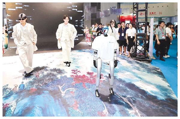 9月19日,第22届中国—东盟博览会旅游展区在桂林国际会展中心开馆现场,智能机器人与舞者一起亮相。 记者李凯 摄