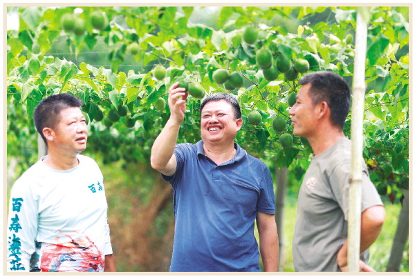 起步阶段,部分村民对土地流转心存顾虑,甚至当面质疑。黄厚强不退缩,而是带着村干部挨家挨户做工作、算细账。在他的带领下,当年种植的40亩百香果喜获丰收,纯收入超12万元,之前观望的村民纷纷加入种植队伍。