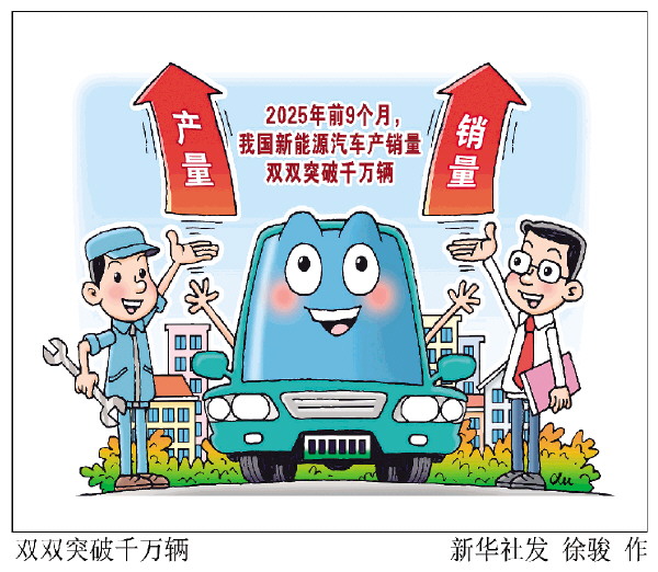 新华社北京10月14日电(记者唐诗凝)中国汽车工业协会14日发布数据显示,2025年前9个月,我国新能源汽车产销量双双突破千万辆,同比增幅均超过30%,彰显汽车产业蓬勃活力。