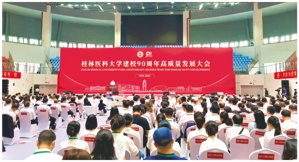 ▲10月18日,桂林医科大学建校90周年高质量发展大会举行。 记者李凯 摄