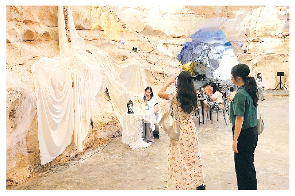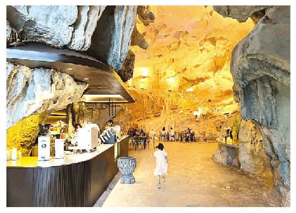 ▲走进洞境咖啡,天然岩洞与精心设计的灯光巧妙融合,暖黄光线勾勒出岩石的自然肌理,营造出奇幻又温馨的氛围。 记者周子琪 摄