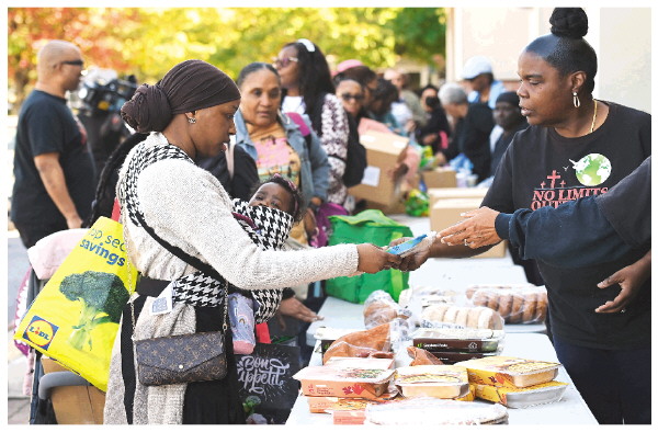 10月21日,在美国马里兰州海厄茨维尔市,联邦雇员领取免费食品。