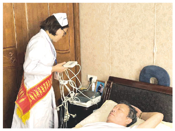 象山区南门社区卫生服务中心家庭医生团队上门为居民做心电图
