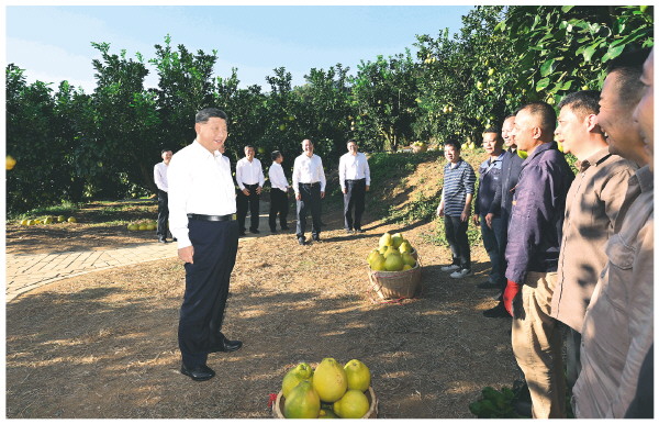 离开时,习近平同村民们亲切道别。他叮嘱,党和政府要继续加强对老区的政策扶持,老区广大干部群众要齐心协力、奋发图强。他祝愿乡亲们的日子过得像金柚一样又甜又美。