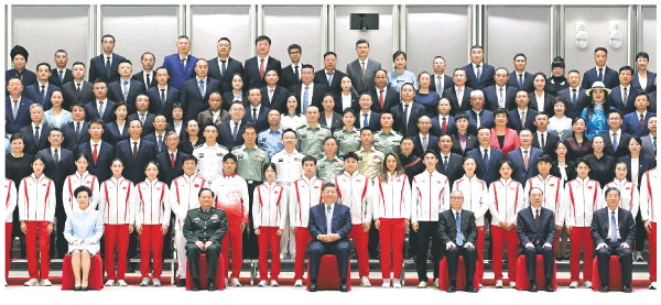 11月9日下午,中共中央总书记、国家主席、中央军委主席习近平在广州亲切接见全国群众体育先进单位、先进个人代表和全国体育系统先进集体、先进个人代表,并同大家合影留念。 新华社记者申宏 摄
