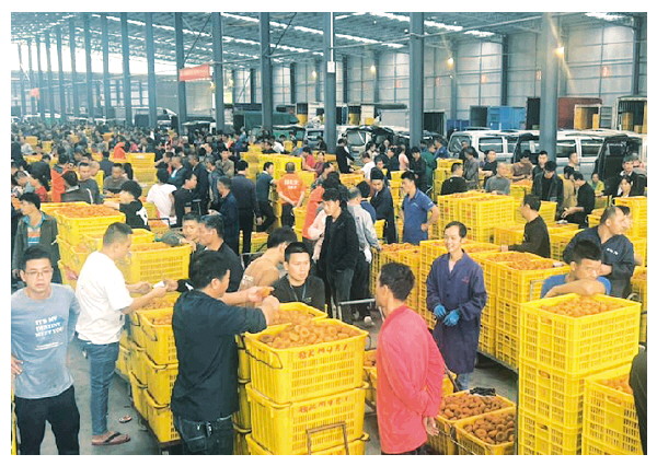 交易市场内,平乐柿饼购销两旺。 记者陈娟 摄