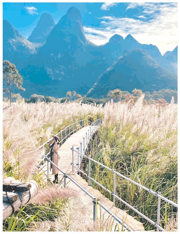 本报讯(记者韦莎妮娜 通讯员王亚东)“蒹葭苍苍,白露为霜。所谓伊人,在水一方……”《诗经·秦风·蒹葭》里的“蒹葭”,指的就是芦苇。如今,在七星区朝阳乡山镜·路亚小院内,再现了古老诗经中的浪漫景象。数十亩芦苇,在微风的吹拂下层层叠叠,此起彼伏,就像白色的海浪。每当夕阳西下,这里总会吸引许多人前来,在芦苇荡中定格浪漫的光影瞬间。