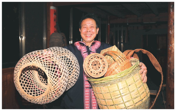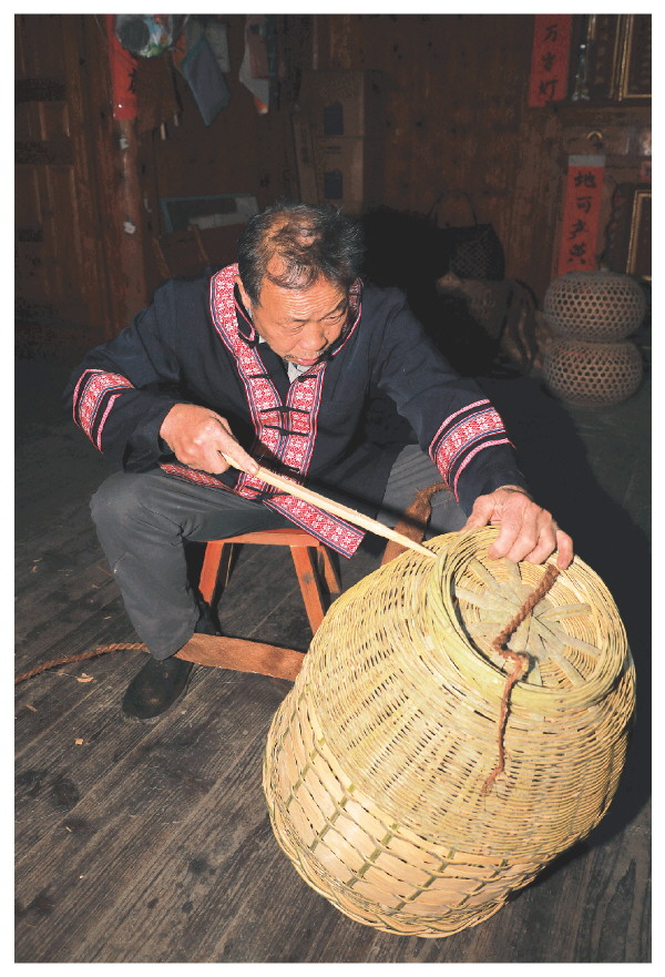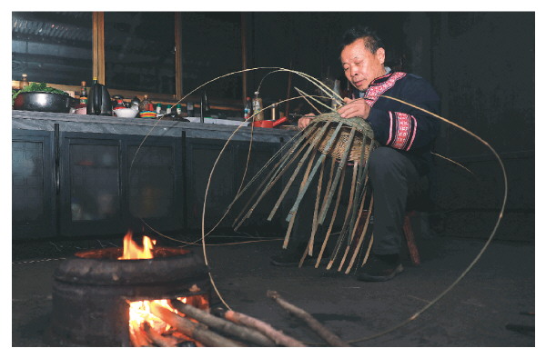 初冬的桂北山区,寒意渐起。在龙胜各族自治县江底乡建新村岩山底组,69岁的龚厚友坐在自家吊脚楼里,双手灵巧地翻飞,一根根竹篾经纬交织,不多时,一个结实的背篓在他手中慢慢成形。