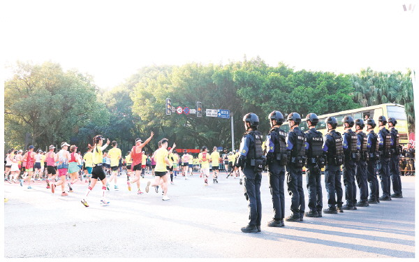 本报讯(记者陈静 通讯员吴敏 吴建林)11月16日上午8时,2025桂林马拉松在中心广场鸣枪开跑。2.3万名参赛选手沿漓江畔逐风前行,在如画的山水间展开竞技。在这场体育盛会背后,桂林市公安局投入大量警力,以严密安保与暖心服务全程守护赛事平安。