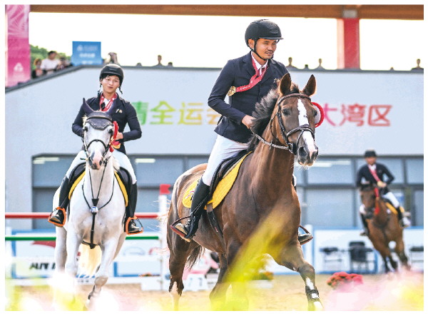 新华社深圳11月17日电(记者黄耀漫 肖世尧)17日,第十五届全国运动会马术项目场地障碍团体决赛在深圳光明国际马术中心举行,广西队人马配合更为默契,以总罚分29分夺得冠军,广东队和内蒙古队分获二、三名。